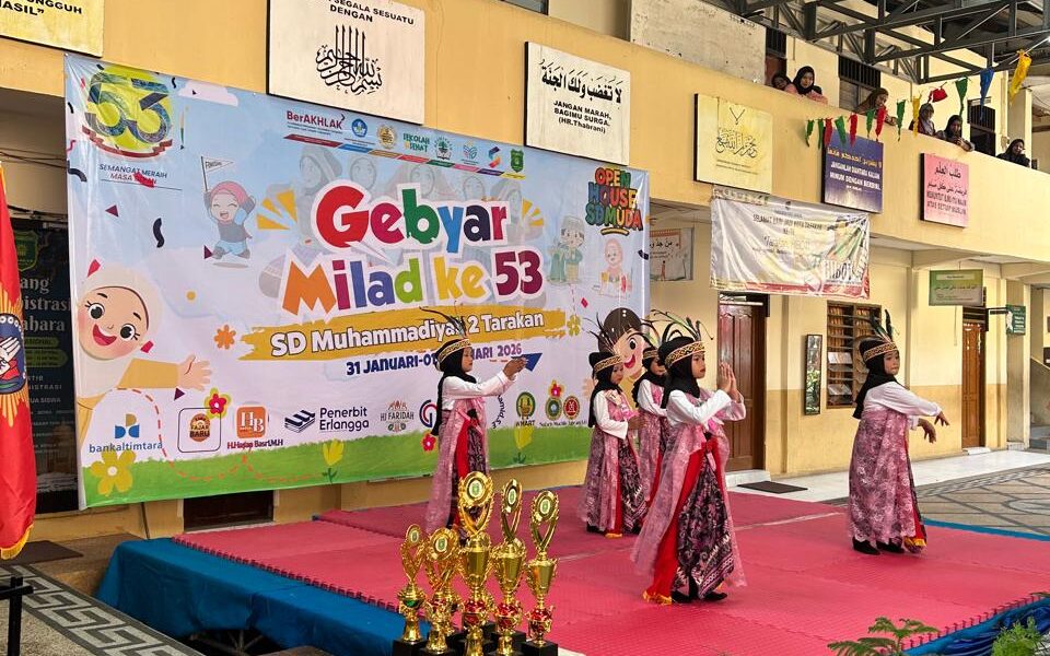 Ajang Lomba Tari Kreasi Open House ke 5 dalam rangka Milad SD Muhammadiyah 2 Tarakan ke 53TARAKAN=== Sabtu, 31 Januari 2026, Suasana ceria dan penuh semangat menyelimuti lingkungan SD Muhammadiyah 2 Tarakan pada kegiatan Open House ke-5 yang digelar baru-baru ini. Acara tahunan ini sekaligus menjadi puncak perayaan Milad ke-53 sekolah tersebut, yang berhasil menyedot antusiasme ratusan peserta dari berbagai kalangan.